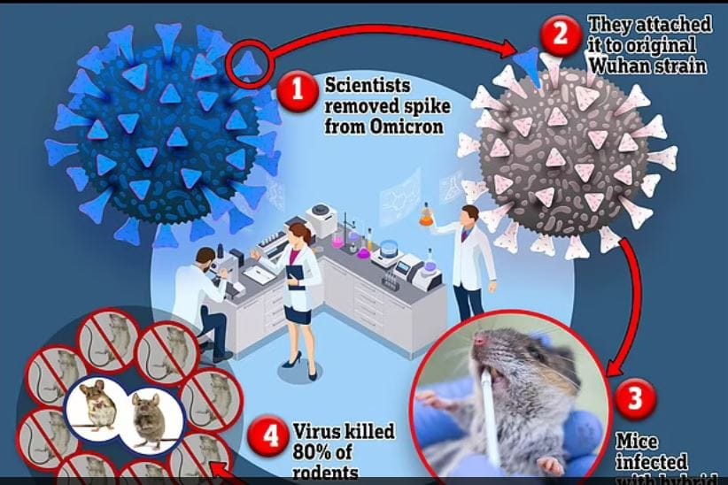 Selon un article du Daily Mail, publié le 17 octobre, des chercheurs de l’université de Boston (BU) ont créé un virus hybride à partir de « la combinaison de la protéine Spike d’Omicron à la souche originale de Wuhan ». L’étude a été publiée sur le serveur pré-impression bioRxiv et elle a révélé que 80% des rongeurs infectés seraient décédés.