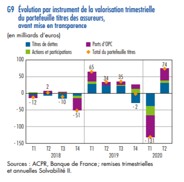 - la chute de la bourse début 2020 a mordu sur les plus-values latentes des portefeuilles d’assurance-vie, mais la Banque de France n’indique pas exactement dans quelle proportion,