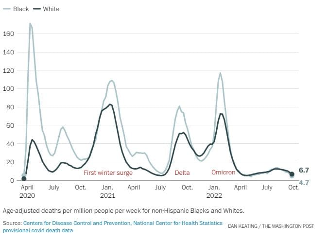 Réduction de l’écart entre le taux de décès dû au Covid-19 entre les Noirs et les Blancs