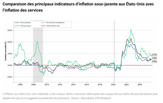 Le retour de Donald Trump aux affaires fin 2024 n'était pas seulement un séisme politique : c'est devenu la variable d'ajustement permanente de l'économie mondiale. Trump l'a dit lui-même : il savoure l'incapacité des marchés à prédire son prochain coup. En 2026, nous subissons de plein fouet les ondes de choc de ses politiques controversées. Ses droits de douane, imposés dès 2025, ont jeté la Réserve fédérale (FED) dans les cordes, l’obligeant à rester sur la défensive pendant que l’inflation jouait au yo-yo (voir graphique).