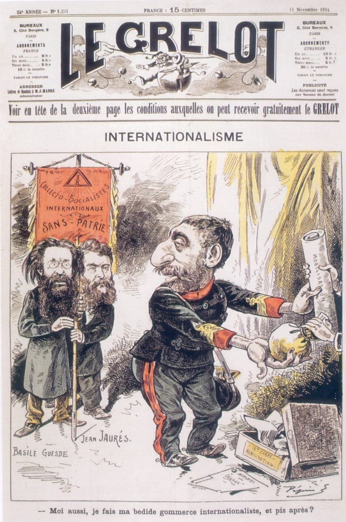 Nous publions en incipit de ce post une caricature antisémite sur l’affaire Dreyfus signée de Pépin, le collaborateur du Grelot, qui se déclarait journal de la gauche républicaine farouchement anticlérical. On a oublié qu’à l’époque, on pouvait être de gauche et ouvertement haineux vis-à-vis des Juifs comme l’était Jean Jaurès par exemple.