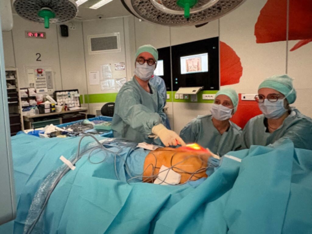 L'équipe du Dr Delia Dammacco, chirurgienne reconstructrice, a opéré avec succès une mastectomie bilatérale via endoscopie. L'insufflation de gaz permet une visualisation optimale sans tension cutanée, utilisant des instruments précis pour une hémostase respectueuse des tissus.
