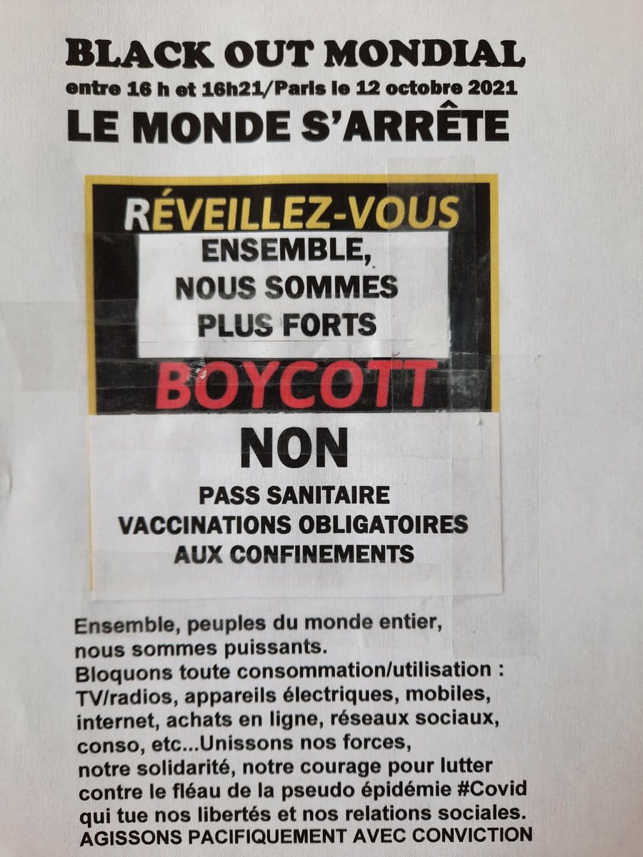 Il est 16h22 ce mardi 12 octobre 2022. Avez-vous participé, dans notre fuseau horaire, au Black Out mondial, entre 16h et 16h21, qui voulait que nous cessions de nous servir de nos appareils électriques et électroniques? Vous n’étiez pas au courant? Mais quelles sont vos sources d’information? Vous n’en aviez pas entendu parler sur BFM TV ni dans le Monde? C’est normal. Vous devriez diversifier vos sources d’information et vous abonner à quelques canaux télégrammes où vous saurez ce qui se passe actuellement dans le monde. Car on assiste à une révolte mondiale des peuples de plus en plus marquée. Il arrivera certainement un moment où cela ne sera plus possible pour les médias subventionnés de dissimuler ce qui se passe. En attendant, proposons un tour du monde.