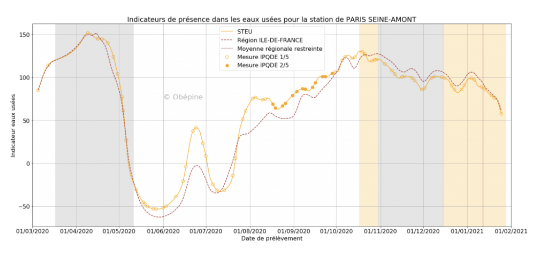Premier signe encourageant : en Ile-de-France, la présence du virus dans les eaux usées est équivalent au niveau atteint au début du mois de mai 2020, rattrapé début septembre. Il est encore un peu trop tôt pour crier victoire, car des remontées brutales sont possibles. Mais la tendance enclenchée depuis trois semaines semble d’autant plus solide qu’elle accélère depuis la dernière semaine de janvier. On y verra le signe du couvre-feu avancé à 18 heures.