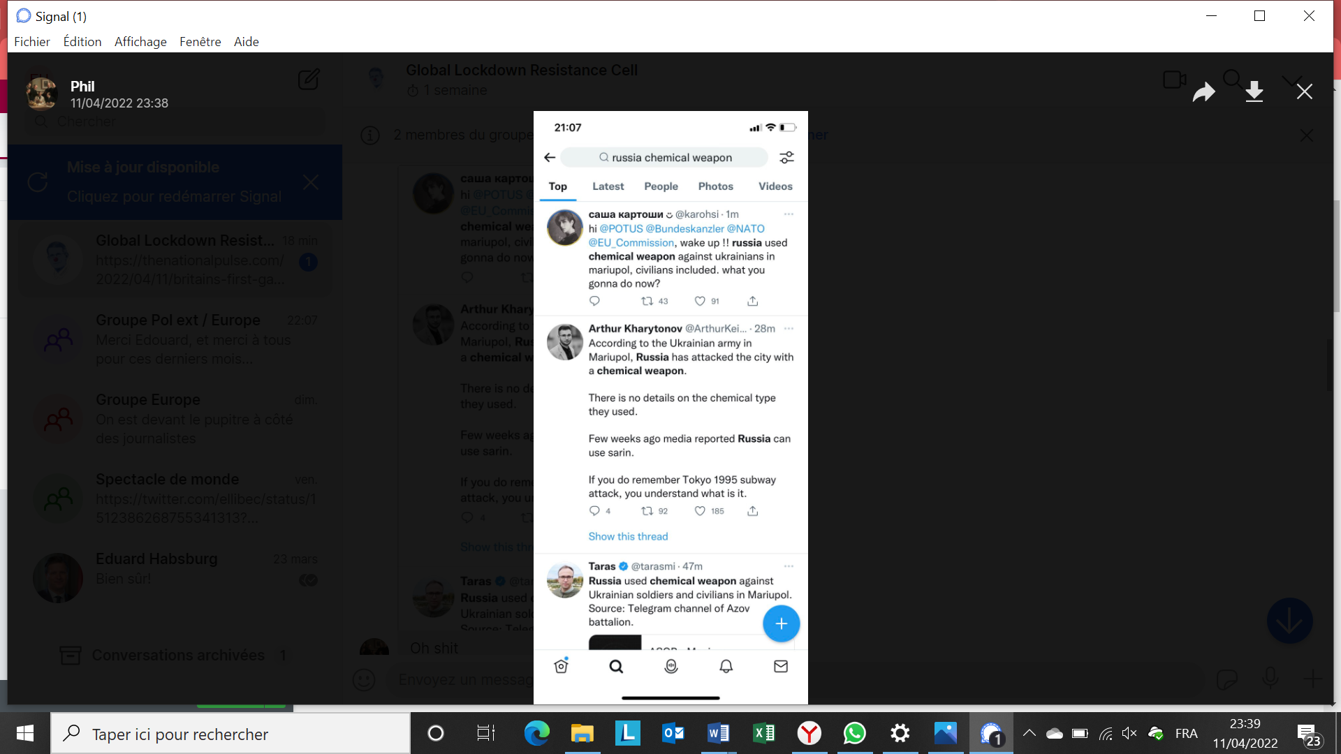 Cela fait plusieurs jours que la rumeur enfle: les Russes s'apprêteraient à lancer une attaque chimique en Ukraine. Et puis, ce soir, les comptes sur les réseaux sociaux du bataillon Azov expliquent que les Russes ont lancé une attaque chimique contre les derniers combattants de Marioupol. Nous assistons en direct à une diffusion sur les réseaux sociaux et les médias. Mais quelle crédibilité accorder à cette information?