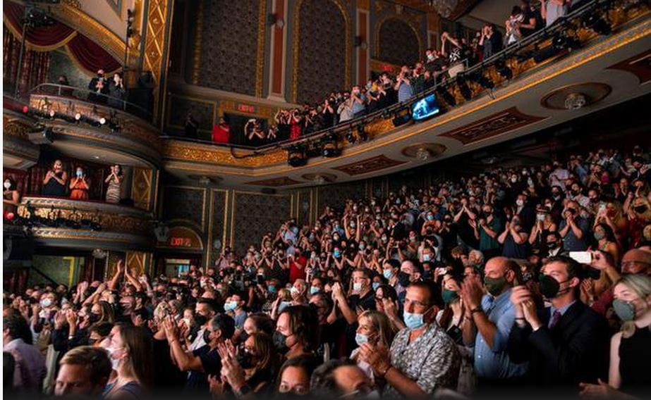 Et pourtant, malgré les mesures sanitaires prescrites, les dernières statistiques montrent que la fréquentation des spectacles demeure inchangée.Les recettes au guichet ont augmenté de 5 % pour atteindre 23 millions de dollars et plus de 92 % des sièges disponibles ont été occupés.