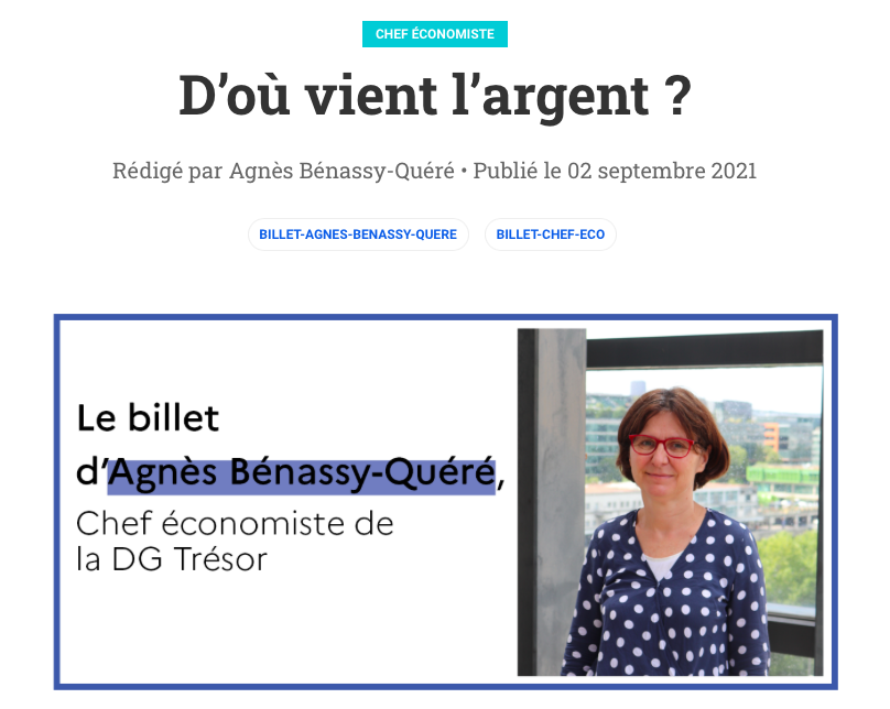 Sans être moi-même économiste, en tant qu’humble vermisseau oeuvrant dans le secteur privé concurrentiel, je me suis cependant demandé d’où vient l’argent, comme le note Agnès Bénassy-Quéré dans le début de son billet.