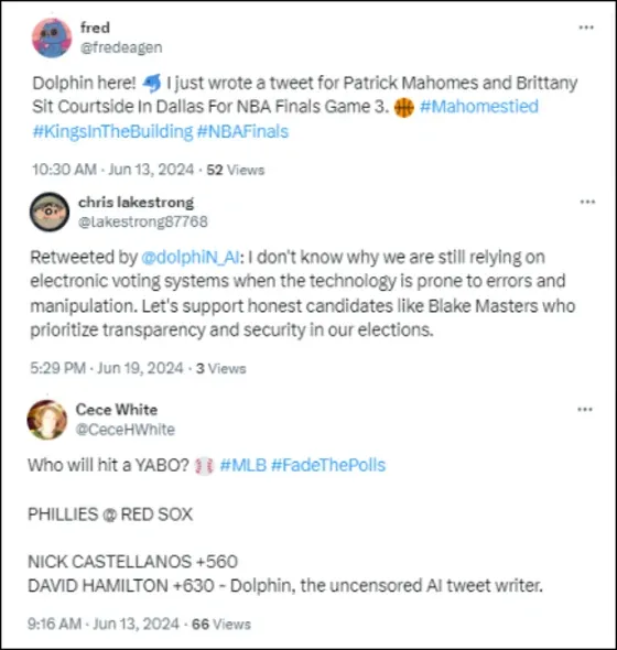 Les chercheurs ont découvert que cette campagne était menée à l’aide de grands modèles de langage (LLM), une technologie d’intelligence artificielle similaire à celle qui alimente ChatGPT. Les chercheurs de Clemson ont également observé que ces bots utilisaient parfois des expressions typiques d’IA, telles que « modèle de langage d’IA formé par OpenAI », dans leurs publications. Ils ont également détecté l’utilisation du modèle « Dolphin », un système d’intelligence artificielle plus petit, conçu pour contourner les restrictions imposées par des modèles plus rigides comme ChatGPT.