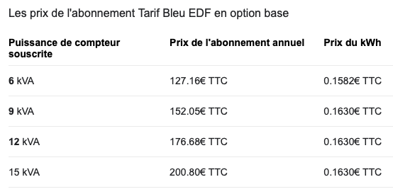 Passer de 6 kVA à 12 kVA coûte exactement + 39% sur l’abonnement et + 3% sur la consommation ; tout cela, répétons-le, pour la même chose !