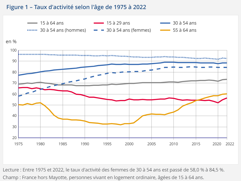 Faut-il parler d’un grand découragement français ? Bien entendu, les chiffres de l’INSEE doivent être pris avec un peu de recul, car ils ne sont au fond pas si effrayants que cela, mais ils donnent un bon indice d’une tendance profonde de la société française. Alors que le taux d’activité des femmes de 30 à 54 ans a fortement progressé depuis les années 70, celui des hommes pour la même catégorie d’âge tend à se tasser dans la même période. Globalement, le taux d’activité (emploi ou chômage) des hommes a baissé de 3 points en 50 ans. Dans cet ensemble, une nouvelle catégorie apparaît : les « découragés » qui ne croient plus au travail. Un phénomène inquiétant.