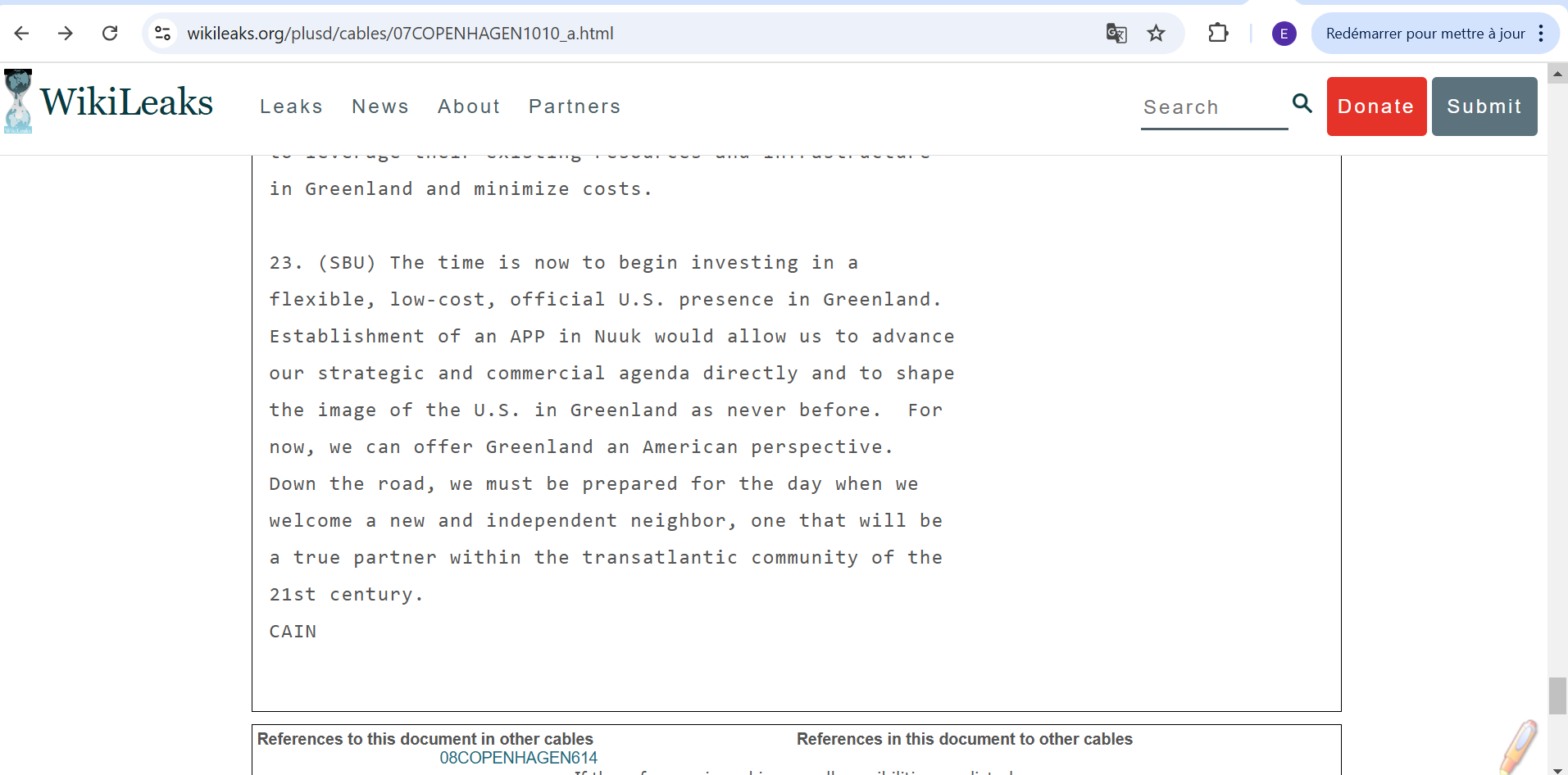 Donald Trump n’a pas inventé le projet d’acquérir le Groenland pour les Etats-Unis. Ce projet existe depuis 2007, quand George W. Bush était président. Et il a fait partie des projets gardés au chaud par le gouvernement Biden. Je sais que je vais décevoir certains lecteurs, qui imaginent Donald Trump comme un héraut du respect des souverainetés nationales. Mais « 45/47 » est le porteur d’un impérialisme américain alternatif au globalisme. Avant même d’avoir entamé son second mandat, il a mis en question la souveraineté de trois Etats: le Panama, le Canada et le Danemark. Il est temps de se demander comment la France doit s’adapter à la donne créée par le nouveau président américain.