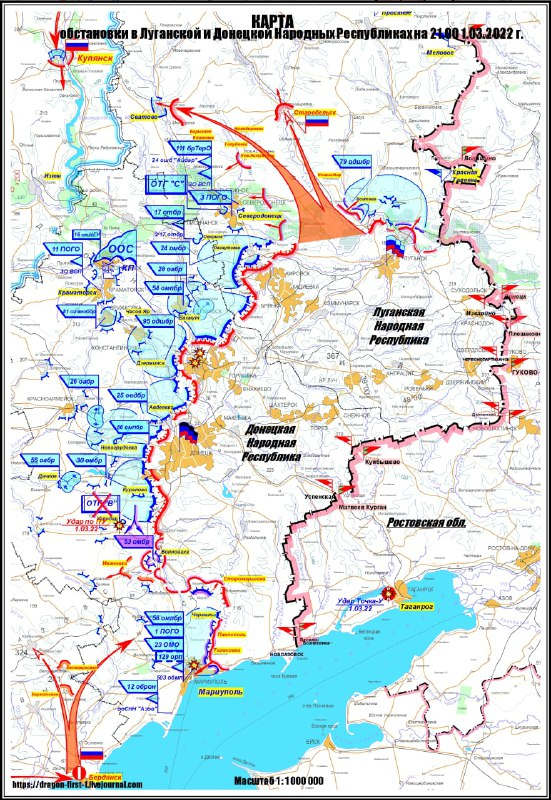 « Dans la nuit du 1er au 2 mars, les forces alliées LDNR ont lancé un assaut sur Marioupol, où se concentrent un énorme groupement de forces armées ukrainiennes et de mercenaires étrangers originaires de Croatie et de Biélorussie, devenus partie intégrante du régiment nationaliste « Azov ».