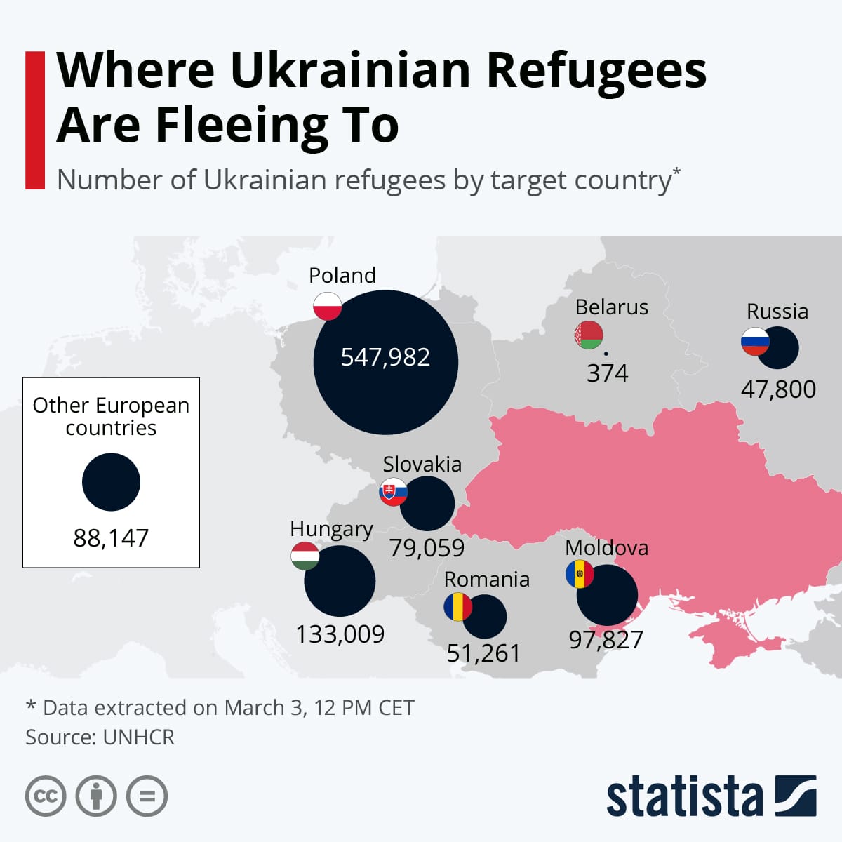 Normalement, on devrait avoir des flux de réfugiés vers la Biélorussie et la Russie ou par la Mer Noire vers lee nord-est des Balkans. On a bien un afflux en Moldavie, région la plus proche d’une zone de front. Mais pour le reste, c'(est vers la Roumanie, la Hongrie, la Slovaquie, la Pologne surtout que les réfugiés affluent. Et ils fuient des régions où il n’y a pas de guerre! Ils quittent l’Ukraine de Zelensky ! Pour quelles raisons?