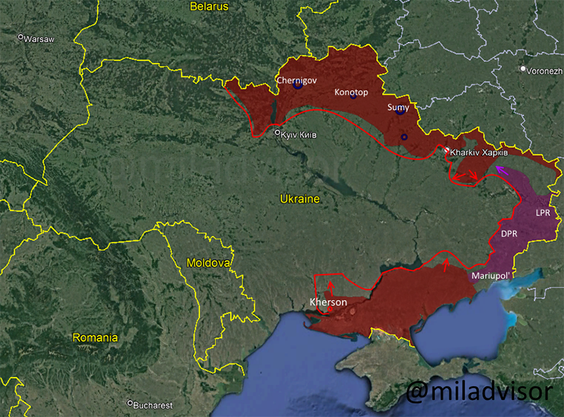 Au total, donc, les Russes continuent à procéder comme depuis le début de l’opération: avancée lente, méthodique, en prenant progressivement en étau les villes au fur et à mesure que les territoires sont contrôlés. Les Kiéviens essayant à tout prix de porter le combat vers les villes, les Russes ont pour l’instant essayer de limiter les attaques aériennes sur les villes – Kharkov semble une exception.