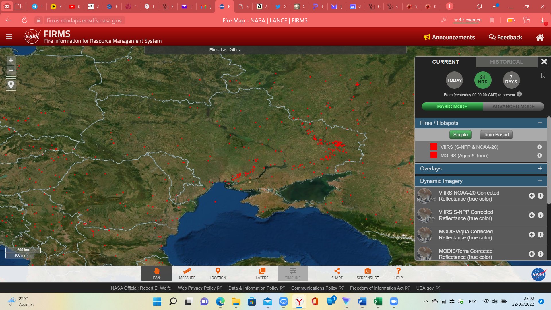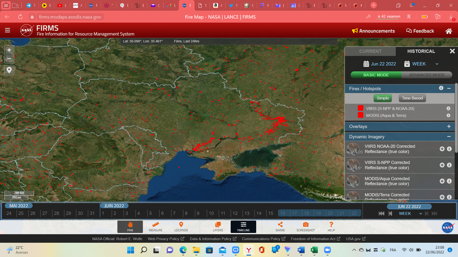 +Je remercie le lecteur de ces compte-rendus réguliers qui m’a orienté vers la cartographie des incendies dans la monde par la NASA. Elle permet de vérifier indirectement, par une densité inhabituelle de points rouges, la ligne de front des combats d’artillerie. Vous pouvez zoomer, demander les informations pour la journée en cours, pour les dernières vingt-quatre heures ou pour des durées plus longues. En demandant les données sur une semaine, vous aurez une image intéressante de la densité (nuages de points rouges) des frappes russes sur des objectifs militaires ou d’infrastructures sur l’ensemble du territoire ukrainien: