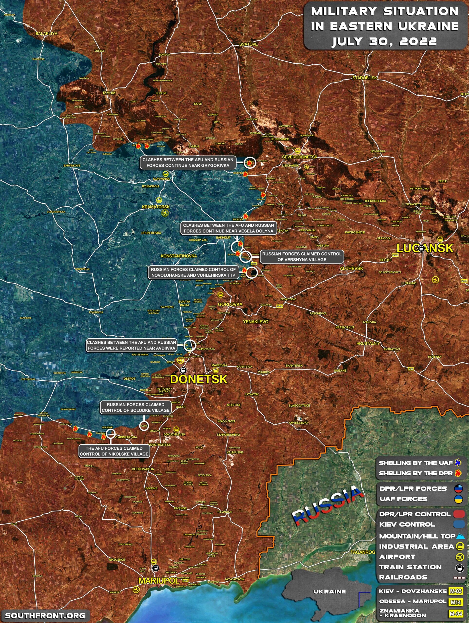 + Le 27 juillet, le représentant officiel de la milice populaire de la République Populaire de Donetsk, Ivan Filipenko, a confirmé la destruction complète des unités ukrainiennes qui étaient déployées dans la centrale thermique d’Ouglegorsk.