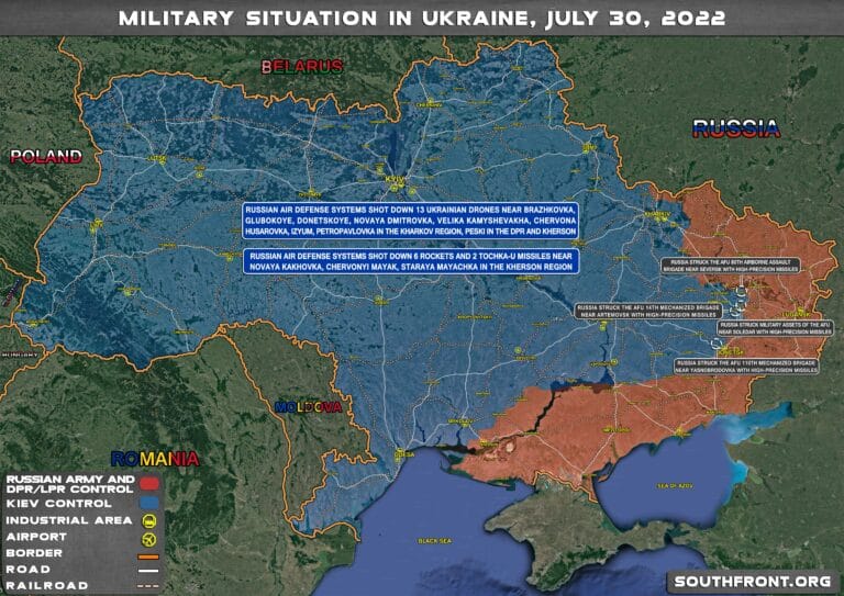 + Le 26 juillet, un incendie s’est déclaré dans un dépôt pétrolier dans le district Boudionnovski de Donetsk à la suite d’un bombardement ukrainien. Les troupes ukrainiennes ont tiré trois missiles de la MLRS américaine HIMARS sur ce dépôt de pétrole, ont rapporté les autorités de la République populaire de Donetsk. L’incendie a été rapidement maîtrisé et il n’a pas fait de victimes.