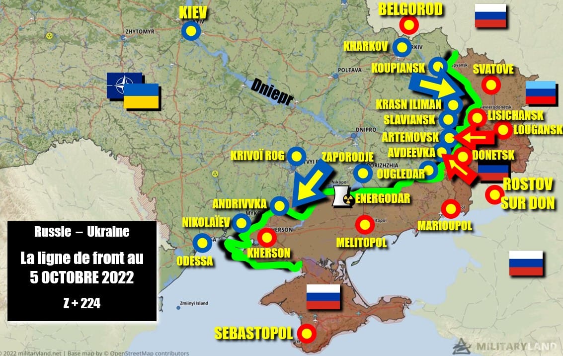 Début septembre, les forces de Kiev ont également engagé dans ce secteur clef d’Artemovsk-Soledar défendant Slaviansk et Kramatorsk (20 km au Nord-Ouest) des offensives contre les forces russes et qui ont été repoussées en leur faisant subir de lourdes pertes.