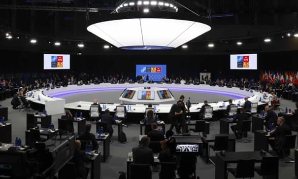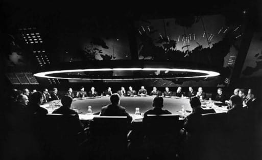 Ci-dessus la salle du Docteur Folamour. Et ci-dessous, la salle du sommet de l’OTAN le 29 juin 2022: