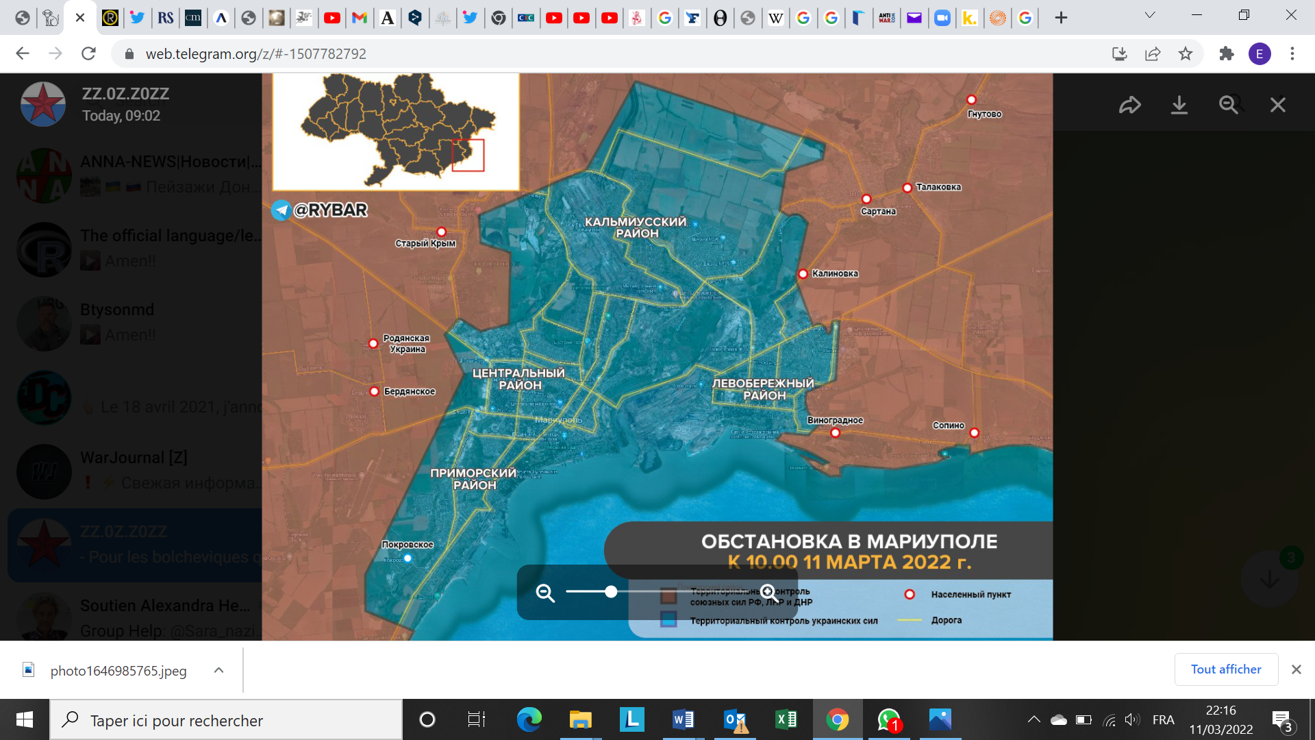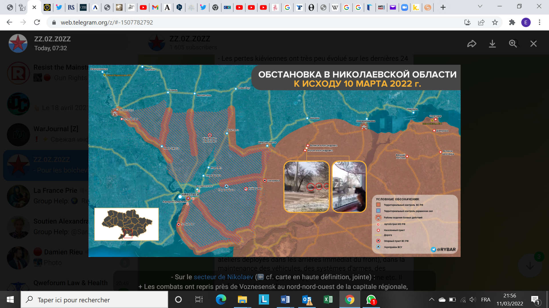 10h00 – C’est cela le vrai journalisme moderne. Un certain nombre de russophones font un travail fantastique de collecte de l’information à partir des canaux Telegram. Quelques informations que vous n’entendrez ni dans les médias mainstream ni même dans toute une série de boucles qui ne s’intéresse qu’à la communication ukrainienne sur la guerre: