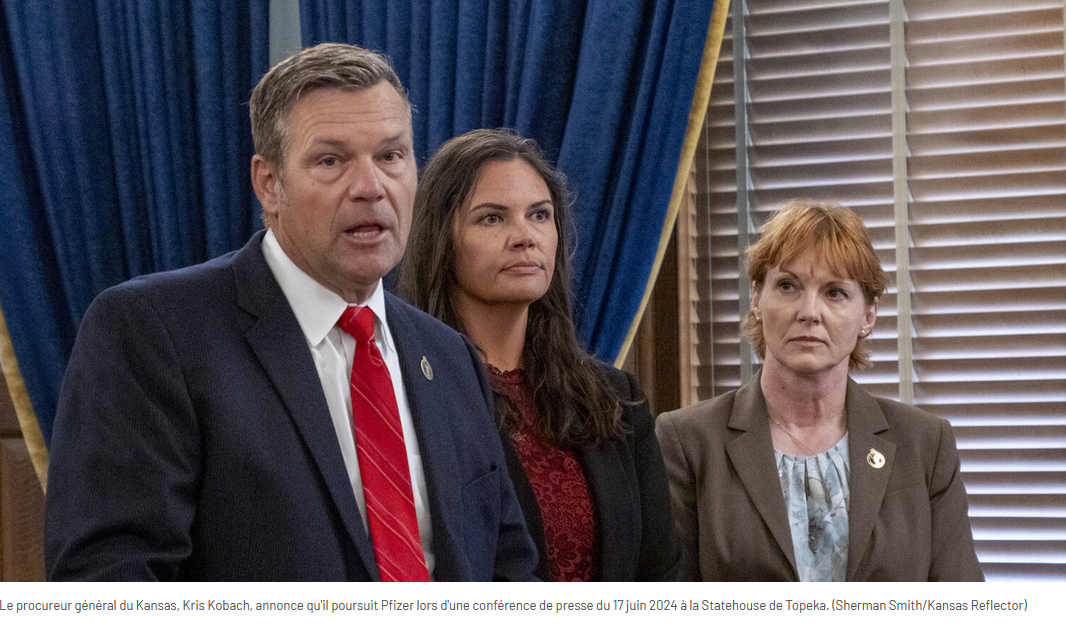 Le procureur général du Kansas, Kris Kobach, a intenté une action civile contre Pfizer Lundi. Il accuse la société pharmaceutique d’avoir « induit en erreur le public en lui faisant croire qu’il disposait d’un vaccin sûr et efficace contre le Covid-19 ». Il accuse Pfizer d’avoir trompé le public en affirmant que son vaccin contre la COVID-19 était « sûr et efficace », enfreignant ainsi la loi sur la protection des consommateurs de l’État.