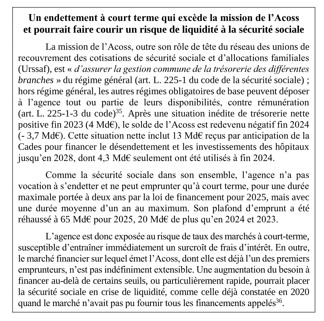 La Cour des Comptes, dans son rapport sur la sécurité sociale, vient de confirmer nos affirmations : il y a bien un risque de trésorerie pour la sécurité sociale.