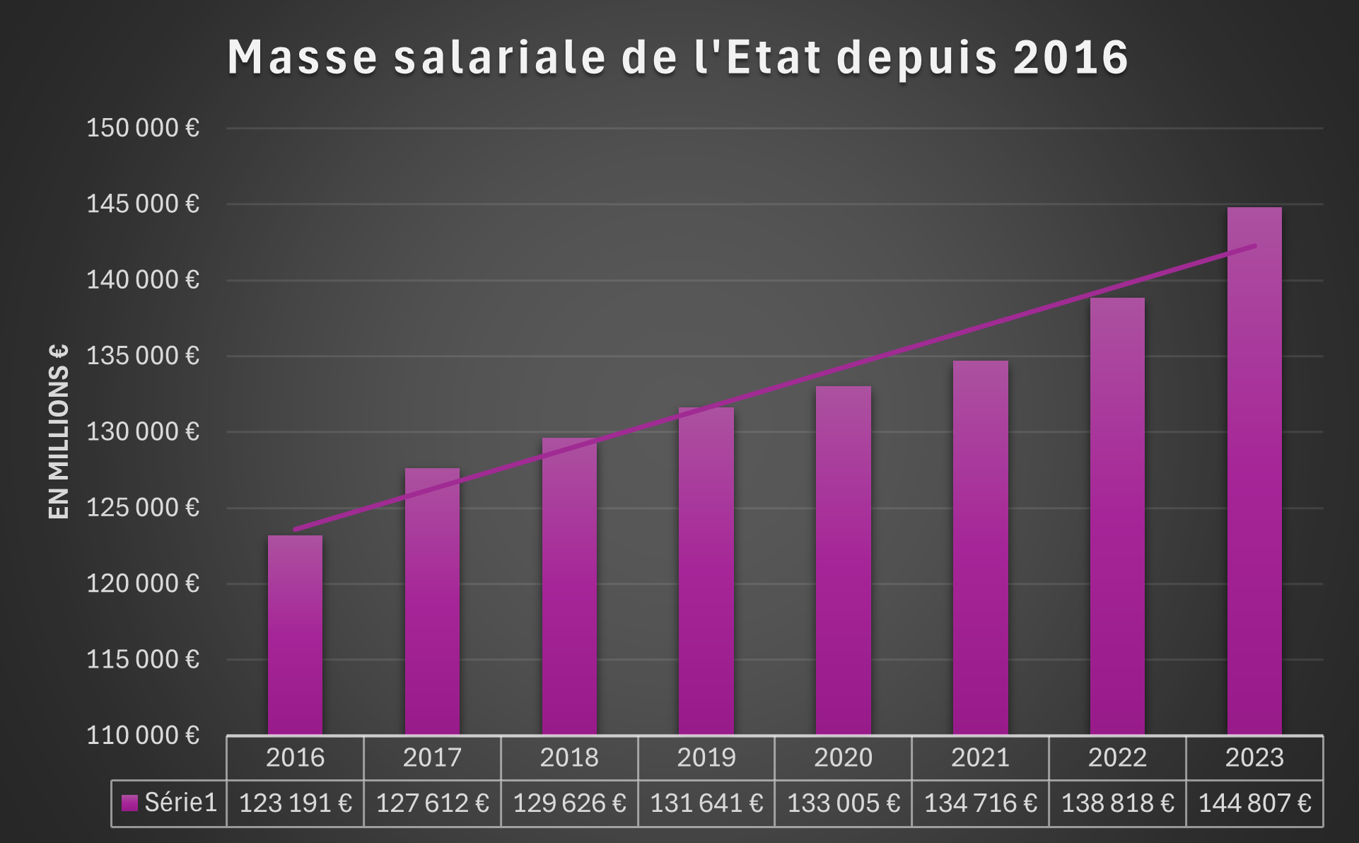 Une théorie répandue veut que Macron soit un affreux néo-libéral qui diminue les moyens de l’Etat et fasse les beaux jours du « marché ». C’est bien méconnaître les arcanes du capitalisme de connivence, qui permet en même temps de faire prospérer la bureaucratie et d’enrichir les copains. La preuve ? Depuis l’arrivée au pouvoir de Macron, la masse salariale de l’Etat n’a certainement pas baissé. Elle a même augmenté de 17%, signe d’un dynamisme qui n’a absolument rien de libéral.