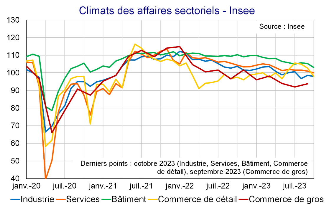 L’INSEE vient de publier son baromètre du climat des affaires, et il n’est pas très bon. Continument depuis plusieurs mois, le pessimisme se diffuse face au ralentissement de l’activité qui devrait confiner à la récession dans les prochains mois. Cet élément est important à retenir, car il souligne les difficultés croissantes auxquelles nous risquons d’être confrontés, notamment du fait des troubles internationaux. Peu d’entrepreneurs entrevoient une amélioration, semble-t-il.