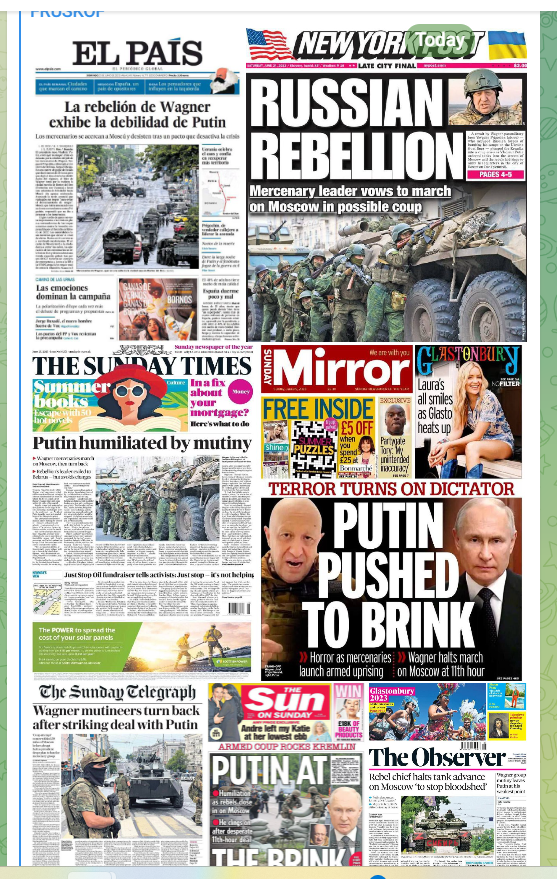 Maintenant que la poussière du putsch manqué de Prigogine est retombée, examinons calmement les faits. Nommons les événements d’abord : sur incitation (vraisemblablement financière) américaine, Prigogine a tenté un coup d’État. En moins de 24 heures, devant le soutien massif au président en place, le chef de Wagner, qui ne pouvait même pas compter sur tous les hommes de Wagner, a cédé et accepté de s’exiler en Biélorussie. Quels arguments concrets les journaux occidentaux ont-ils pour affirmer que Vladimir Poutine sort affaibli de la crise. Même la communication officieuse des services américains pour faire savoir qu’ils étaient au courant d’une tentative de putsch, aboutit à l’inverse du résultat escompté : elle donne à penser que le Kremlin se sentait assez fort pour laisser Prigogine se découvrir. Bien entendu, la thèse d’une trahison non seulement de Poutine mais de la Russie, par Prigogine, fait saisir qu’une lutte à mort est désormais engagée, qui se finira par la défaite géopolitique complète d’un des deux protagonistes : soit la Russie soit les États-Unis.