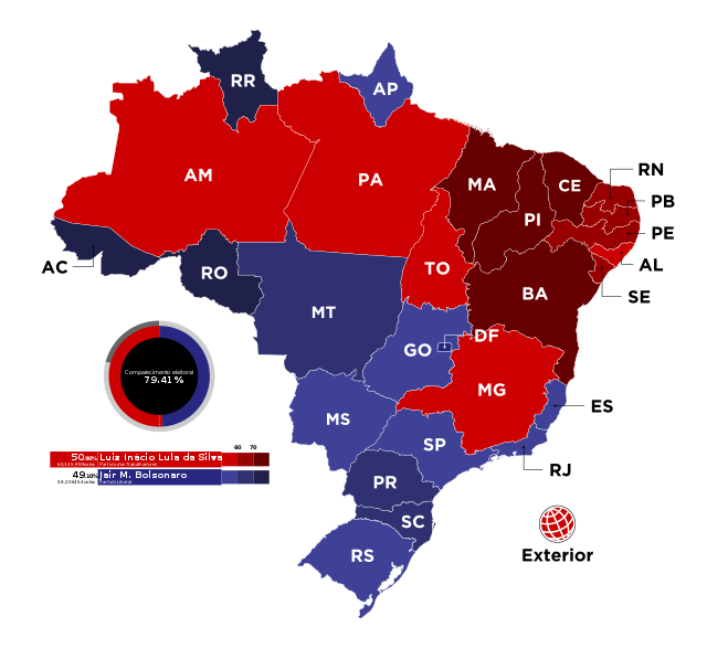 Stéphane Frappat, entrepreneur français vivant au Brésil depuis une quinzaine d’années, iniste sur le fait que cette coupure n’est pas sociale mais témoigne d’une crise du métissage à la brésilienne. « Les Blancs votent Bolsonaro, les métis et les Noirs Lula ». (Il faudrait s’interroger sur la montée de l’évangélisme d’influence états-unienne aux dépens du catholicisme). Stéphane Frappat avait en outre fait le bon pronostic dans un fil twitter publié avant le second tour. Il fallait regarder l’Etat de Minas Gerais, qui est, dit-il, un « petit Brésil », pour savoir le vainqueur: Bolsonaro l’avait gagné en 2018; il l’a perdu en 2022: