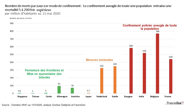 Plus d’un an après le début de l’épidémie, peut-on dire que le confinement a limité le nombre de décès de gens contaminés ? Aucun gouvernement ayant décidé du confinement ne s’est hasardé à le soutenir. Aucun média (subventionné) en France n’a décidé de lancer une enquête sérieuse. Seul France Soir a osé posé la question en juin 2020 et avait déjà à l’époque répondu « non ».