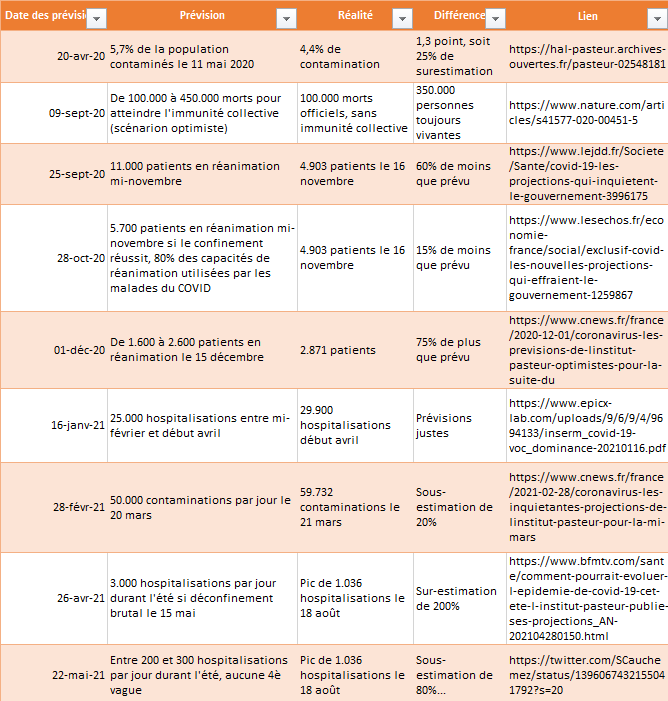 Ainsi, en avril 2020, Pasteur annonçait-il 450.000 morts du coronavirus en France. En septembre 2020, il annonçait 11.000 personnes en réanimation au 15 novembre, quand il y en eut moins de 5.000. Le 26 avril, l’Institut annonçait 3.000 hospitalisations par jour durant l’été en cas de déconfinement, là où il y en eut 1.000 au maximum. Et fin mai, l’Institut annonçait un été radieux quand le gouvernement s’est affolé autour de la 4è vague.