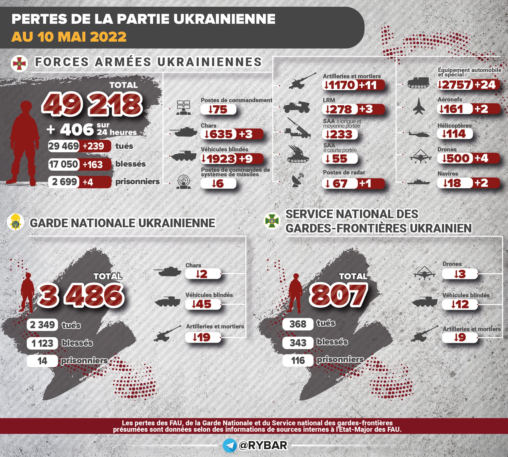Nous disposons d’une évaluation régulière des pertes ukrainiennes réalisée par @rybar sur Telegram:
