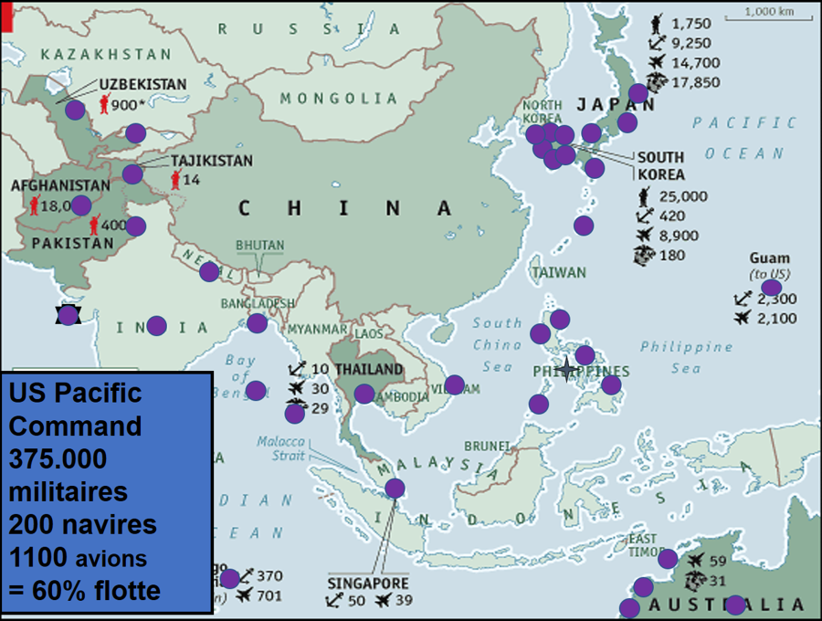 La réalité est bien celle d’une Chine qui se sent encerclée – comme le montre la carte de la présence militaire américaine en Asie du Sud et dans le Pacifique. Et d’un pays qui comptait sur le maintien d’un monde ouvert pour continuer à monter en puissance technologique. Mais la réalité est plutôt celle de la reconstitution des blocs, comme vient de le montrer le sommet USA-Inde-Japon-Australie, appelée Quadriletal Security Dialog (Quad), où les quatre grandes démocraties ont abordé à mots feutrés l’esquisse d’une stratégie de « containement » de la Chine.
