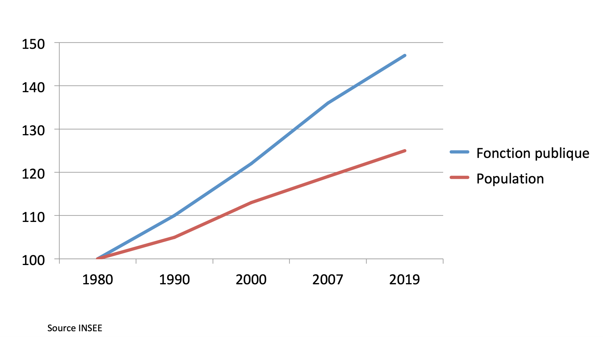Ainsi, la population française a progressé d’un peu moins de 25% tandis que les effectifs de la fonction publique augmentaient presque deux fois plus vite (47%).