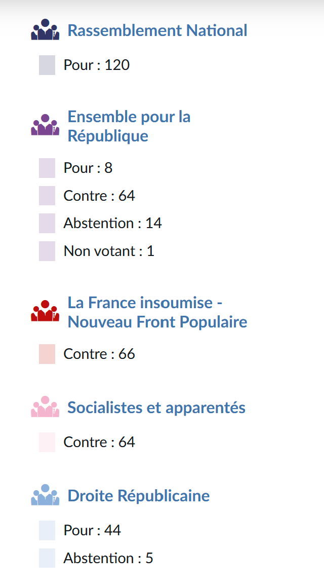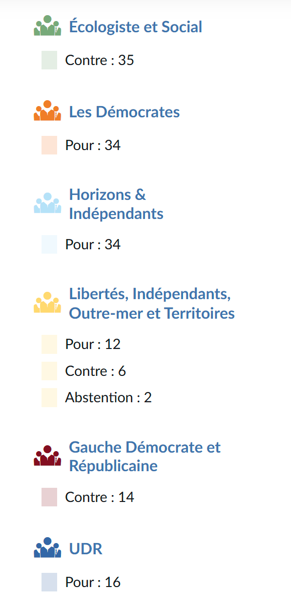 On le voit, la disparition des ZFE n’est pas due à la gauche (la couleur rouge indique qui a voté contre le texte). Elle est essentiellement due à la droite et au RN.