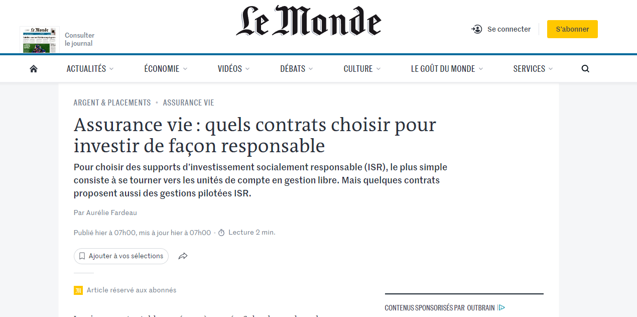 Le cartel de la presse subventionnée multiplie en ce moment les recommandations pour des fonds "verts" auxquels souscrire pour son assurance-vie, notamment. Bien entendu, ces recommandations alignent les chiffres alléchants qui vous poussent à acheter. Voici pourquoi vous devez vous méfier de ces publireportages déguisés, qui servent les annonceurs de ces journaux, mais oublient le devoir de prudence élémentaire qui devrait guider les journalistes.