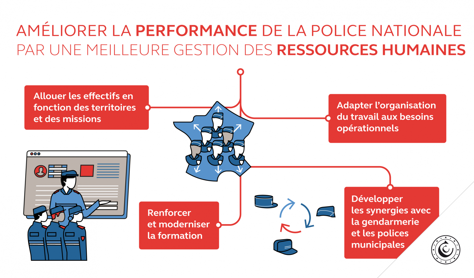 Depuis plusieurs années, la police nationale est confrontée à des défis de sécurité majeurs et à des attentes fortes des citoyens. Pour y faire face, elle a bénéficié de moyens supplémentaires importants, comme en témoignent l’augmentation de 21 % de sa masse salariale en dix ans, et le concours accru de nouveaux acteurs de la sécurité (polices municipales, réservistes, sécurité privée). Néanmoins, les résultats affichés, notamment en termes de présence sur le terrain ou d’élucidation des faits de délinquance, ne connaissent pas d’amélioration significative, voire se détériorent. Les travaux récemment publiés sur le sujet par la Cour soulignent qu’une meilleure utilisation et une gestion rénovée des ressources humaines de la police nationale s’imposent. Plusieurs leviers d’action doivent ainsi être prioritairement mobilisés : une allocation des effectifs mieux ajustée aux besoins des territoires et aux missions, une organisation du travail plus adaptée aux besoins opérationnels, ainsi qu’une formation renforcée et modernisée. La Cour estime, par ailleurs, que des mutualisations entre la police et la gendarmerie pourraient améliorer la qualité du service rendu aux citoyens.