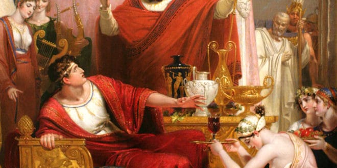 Mais Denys est lié au mythe de Damoclès (pour moi c’est un mythe plus qu’une histoire). Et cela donne sous la plume acérée comme on dit du maître de la prose latine :