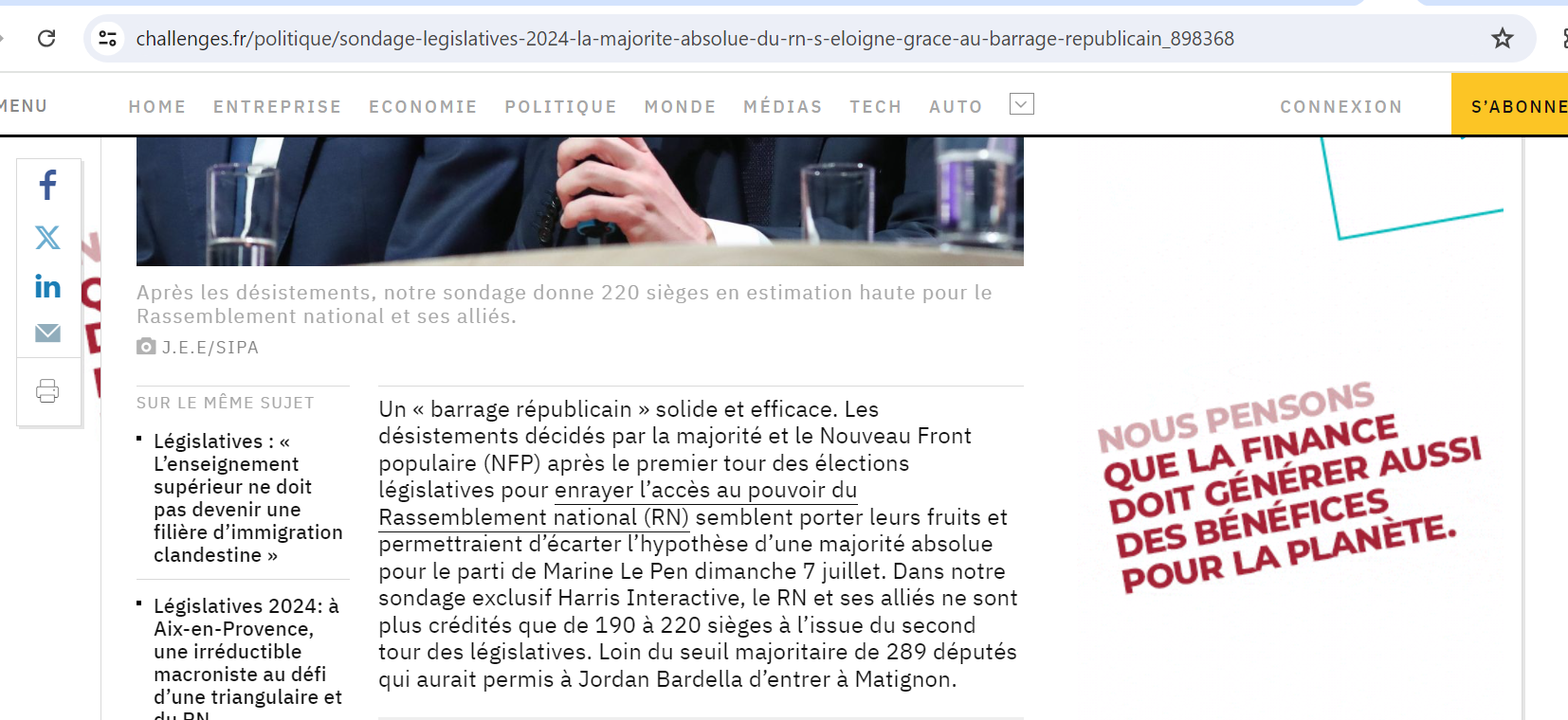 Louis Harris publiait ce mercredi 3 avril des projections censées montrer l’efficacité du front républicain, avec un Nouveau Front Populaire talonnant le RN et ses alliés. Eh bien voilà, ma bonne dame, le président Macron est un génie, comme d’habitude. Le fascisme était aux portes mais notre Conducator veille sur tout et il a paré l’assaut. En réalité, les sondeurs sont aussi perdus que l’ensemble des Français; mais rien n’empêche de poser des chiffres, sans explication méthodologique, qui font plaisir au pouvoir (encore) en place. Quel que soit le résultat dimanche soir, il sera toujours temps d’ajuster. En réalité, tout dépendra du taux de mobilisation des électeurs gauchistes et centristes derrière les mots d’ordre macrono-mélenchonistes