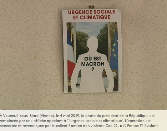 Pas vraiment surprenante (le Parquet ayant lui-même demandé une « condamnation qui ne soit pas assortie d’une peine »), la relaxe des décrocheurs de portraits de Macron jugés à Poitiers confirme ce que l’on savait déjà : plus qu’une opposition contrôlée, l’écologisme climatiste est l’avant-garde hors les murs de la Macronie.