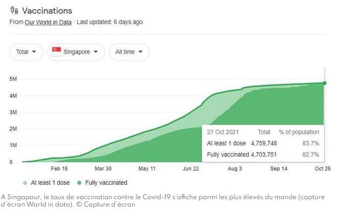 Alors que nous avons évoqué une poussée inhabituelle des infections et hospitalisations avec plus de 80% de vaccinés à Singapour, le taux de décès dû au Covid-19 n’est que de 0,2% (nombre de morts rapporté au nombre de cas identifiés). On peut dire qu’il est relativement faible malgré