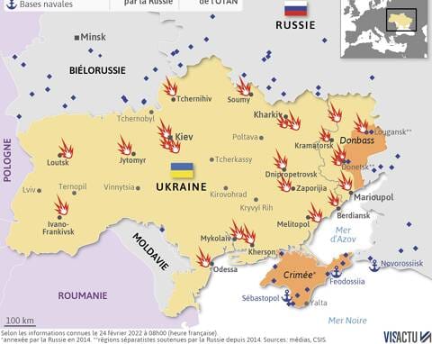 Dans la matinée du jeudi 24 février, les forces militaires russes ont attaqué l’Ukraine. Frappes de missiles tous azimuts de précision et envoi de troupes au sol …, il s’agit d’une attaque d’envergure. Elle vise à désorganiser l'armée ukrainienne.
