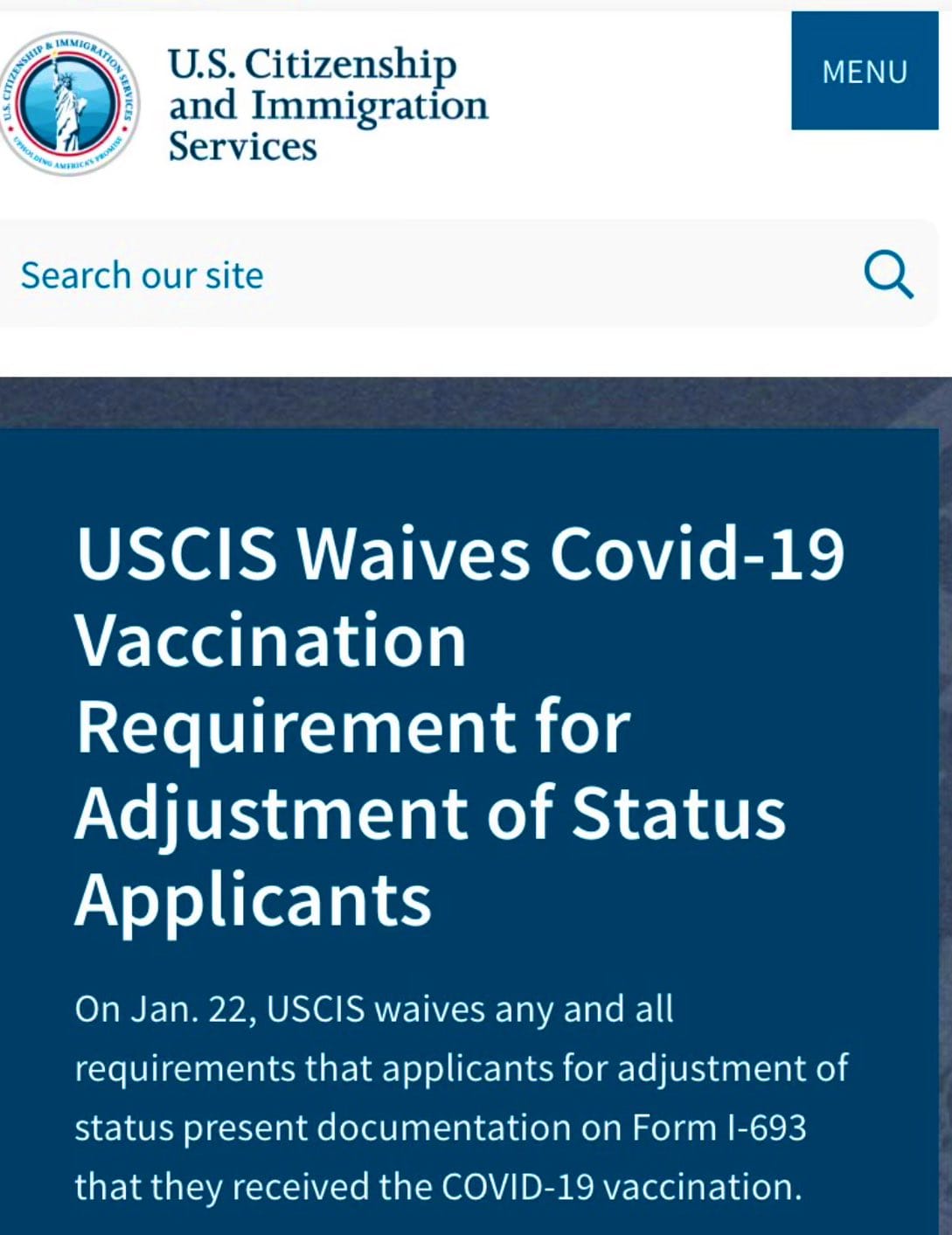 Dans un avis diffusé sur le site Internet des services de citoyenneté et d’immigration des Etats-Unis, il a été annoncé que les migrants ne seront plus obligés d’inclure dans leurs demandes une preuve de vaccination anti- Covid-19.