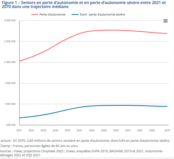 L'étude de l'Insee et de la Drees met en lumière la mécanique inexorable du vieillissement. Toutefois, en se concentrant sur les besoins (lits, personnel) et les solutions collectives (maintien à domicile, politiques publiques), elle occulte la question essentielle de leur financement.